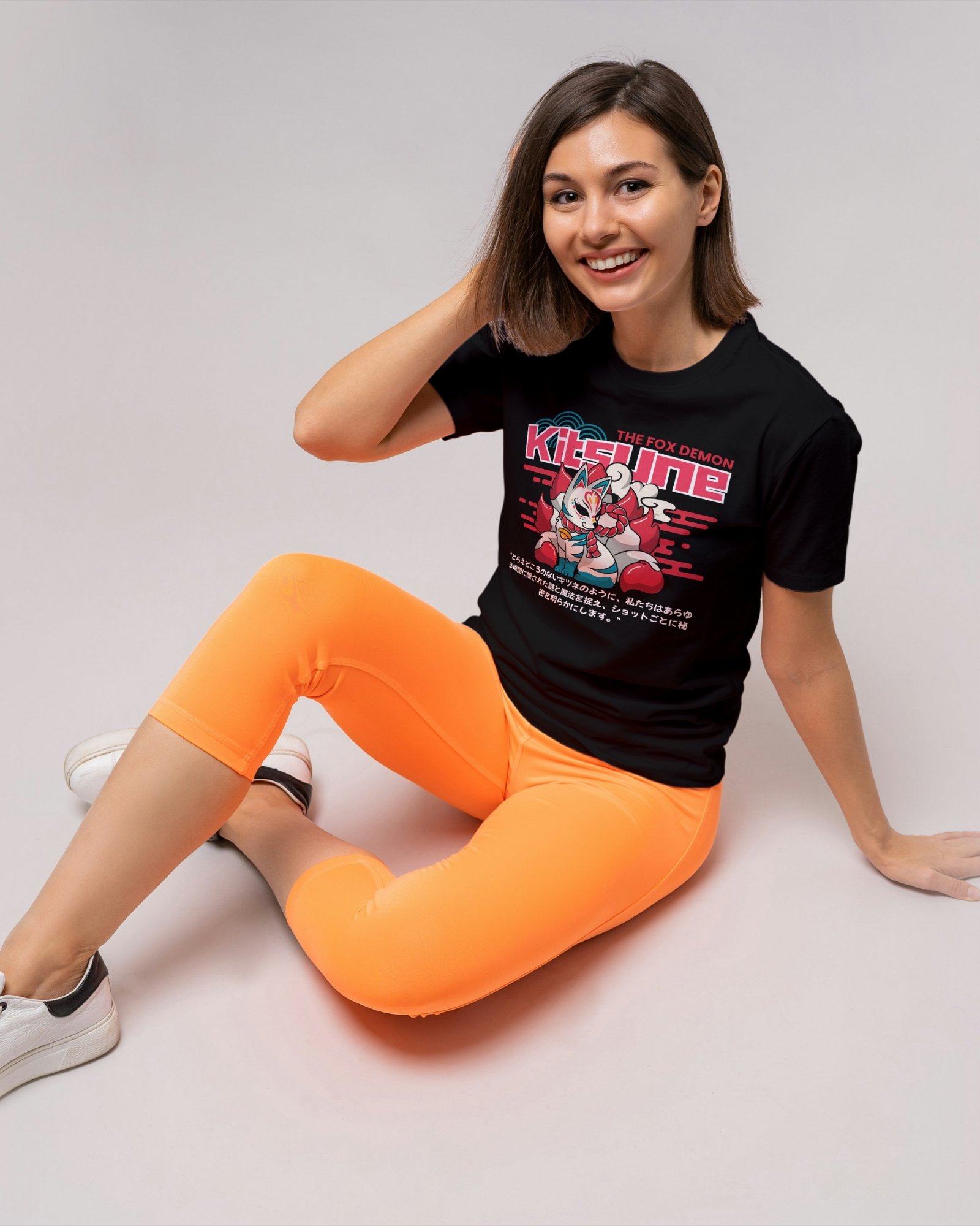 Elevate your wardrobe with our Anime fashion Kitsune Spirit Anime Black T-shirt. Crafted from high-quality cotton, this tee offers ultimate comfort and durability. The eye-catching anime fox print on the front adds a stylish and playful element to any outfit. Perfect for expressing your love for anime in a chic and effortless way.