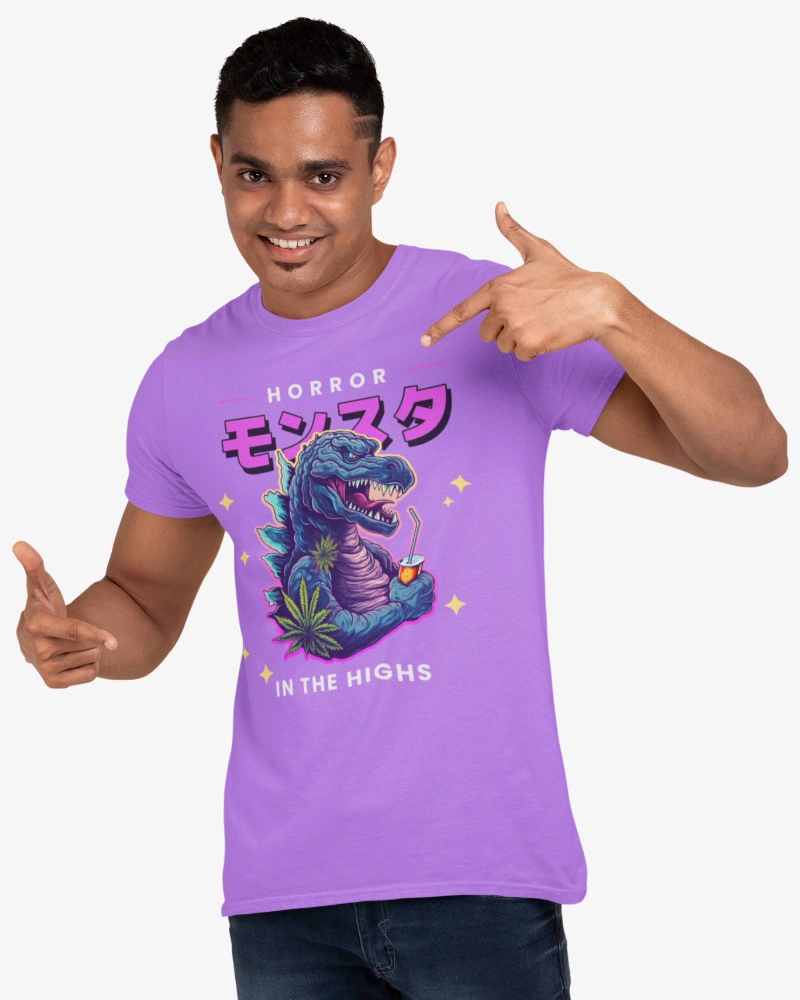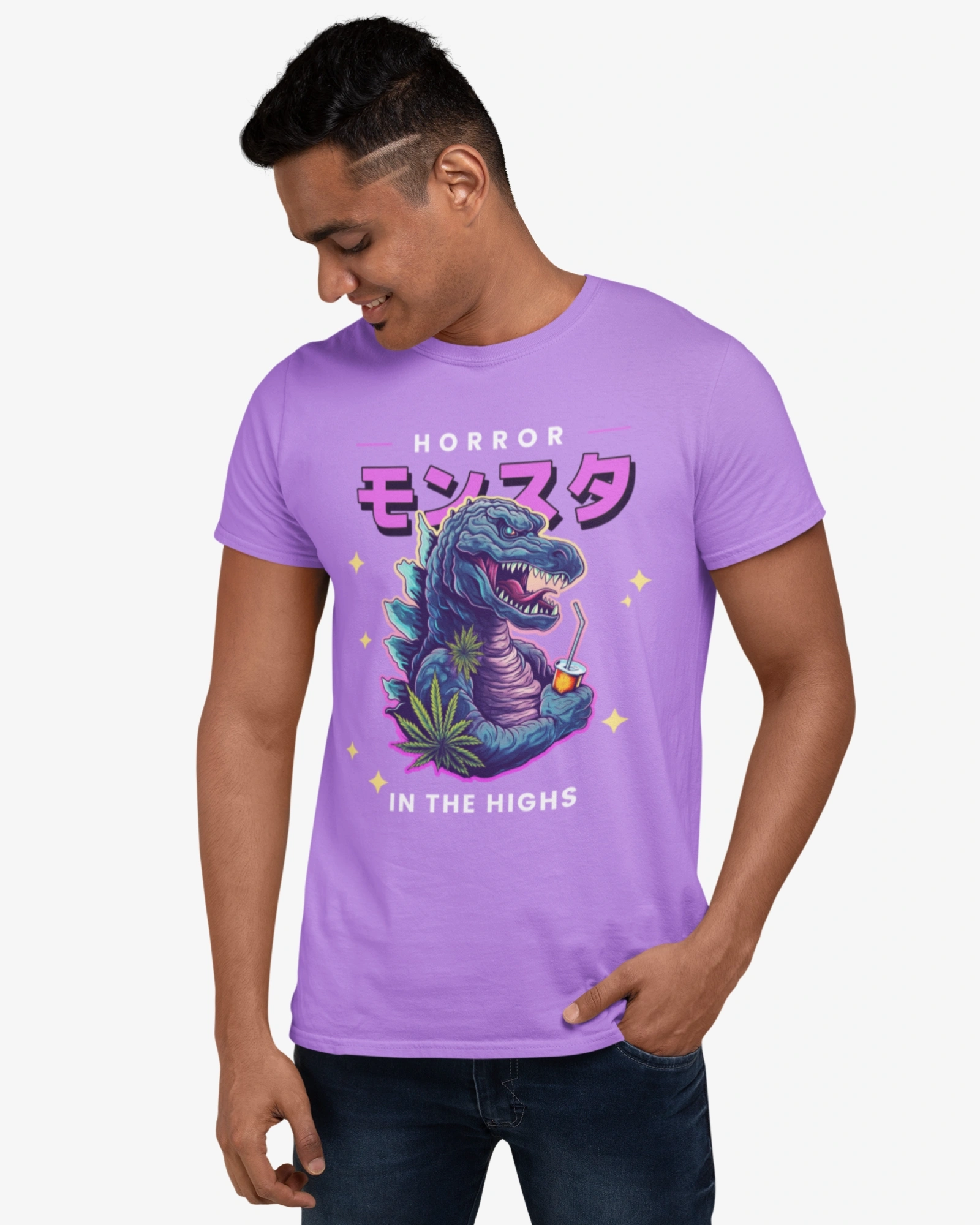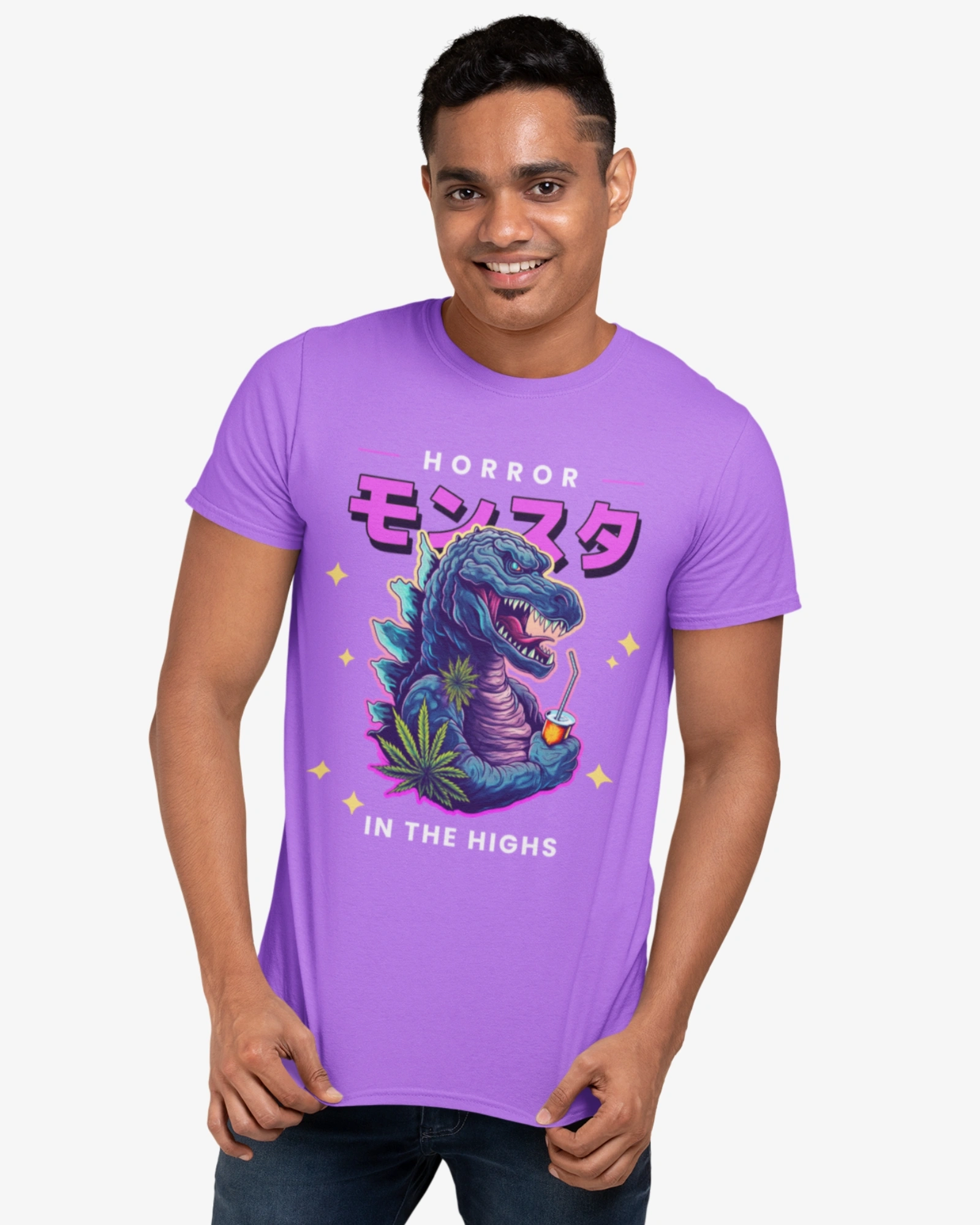 This striking black t-shirt features the word “Monsuta” (モンスター), meaning “monster” in Japanese, boldly displayed across the chest in a dynamic Japanese font. But the real terror lies beneath: a menacing graphic of Godzilla, the king of the monsters himself, ready to unleash his atomic breath.